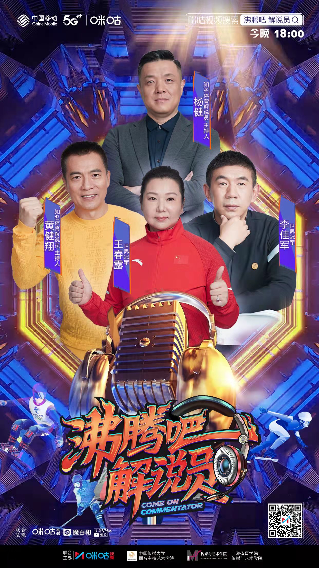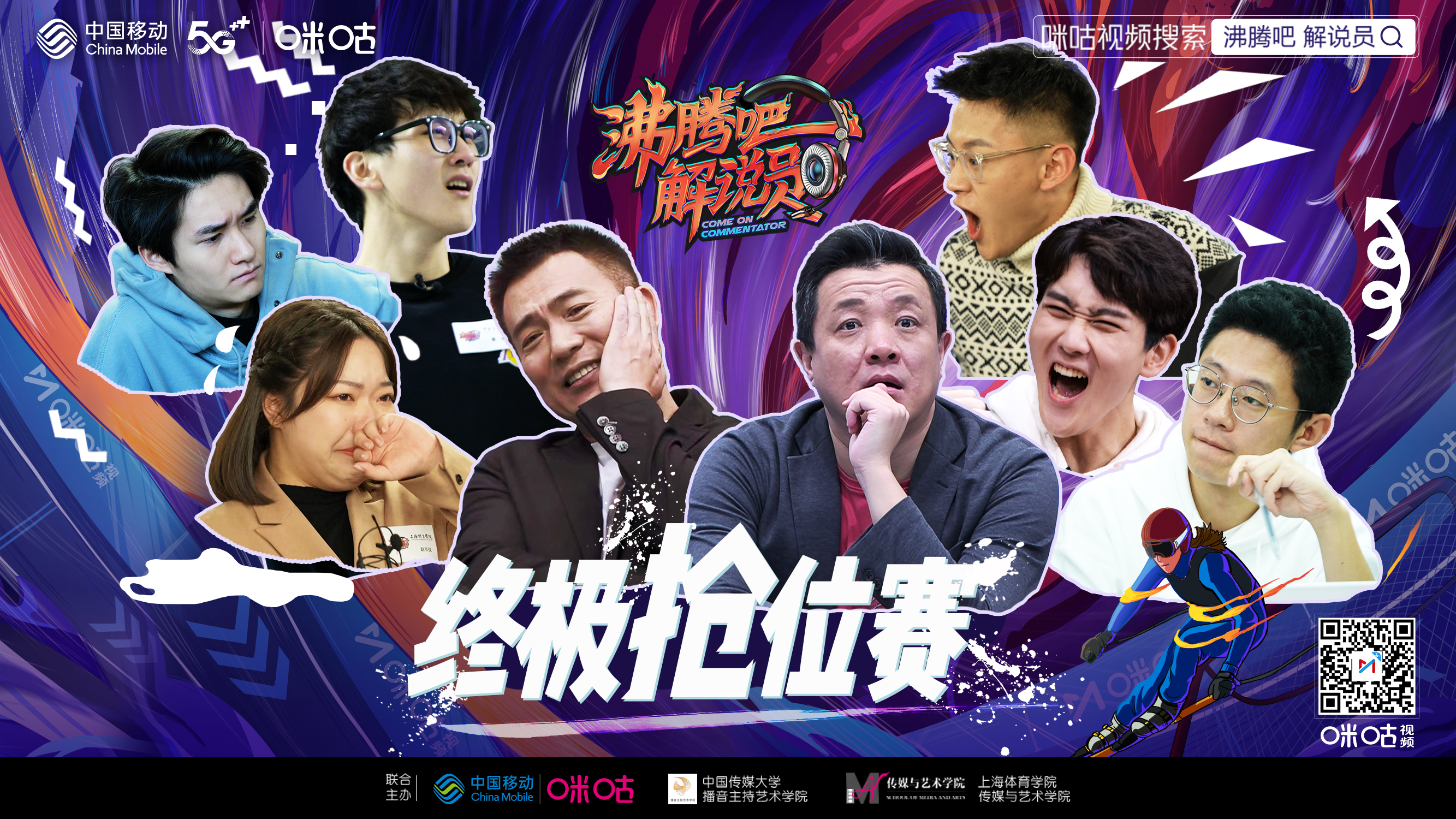 《沸腾吧!解说员》由咪咕视频发起,联合“中国播音、主持摇篮”中国传媒大学和“体育记者、解说摇篮”上海体育公司共同主办,采用冬奥7个大项“对抗解说”的比赛方式,旨在为北京冬奥这一全球顶级赛事挖掘“专业、担当、青春、热血”的解说新声音。