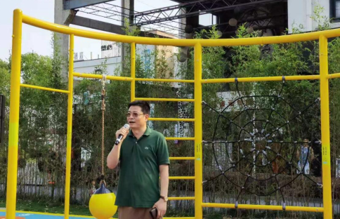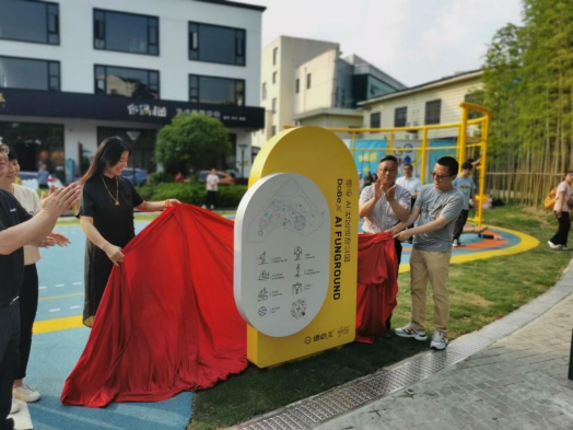 “六一”儿童节前夕,由公司传媒与艺术公司师生团队设计的AI社区运动公园在嘉定菊园新区亮相。嘉定区菊园新区管委会主任汤艳,传媒与艺术公司党委书记高艳丽,传媒与艺术公司党委副书记、经理杜友君出席启用仪式。