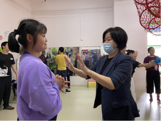大连交通大学一行赴上海彩虹雨智能康复中心观摩了“舞动心灵—上海体育公司舞蹈治疗工作坊”的教学实践,马古兰丹姆带领项目骨干们为自闭症儿童上了一节生动富有趣味的舞蹈治疗课程,平时印象中拘谨怕生的自闭症小朋友们在课堂上展现出积极、活泼的一面,这些孩子经过了几年舞蹈治疗后,发生了很多变化,能够跟着音乐唱起儿歌,能够模仿老师的动作,甚至能够即兴创造出新的动作。这不仅仅是他们自身的努力,更是舞蹈治疗工作坊成员用将近五年多的时间付出的成果。在舞蹈治疗课程观摩中,大连交通大学部分教师也被现场氛围感动,积极参与到课程体验中,与现场的自闭症儿童互动交流。