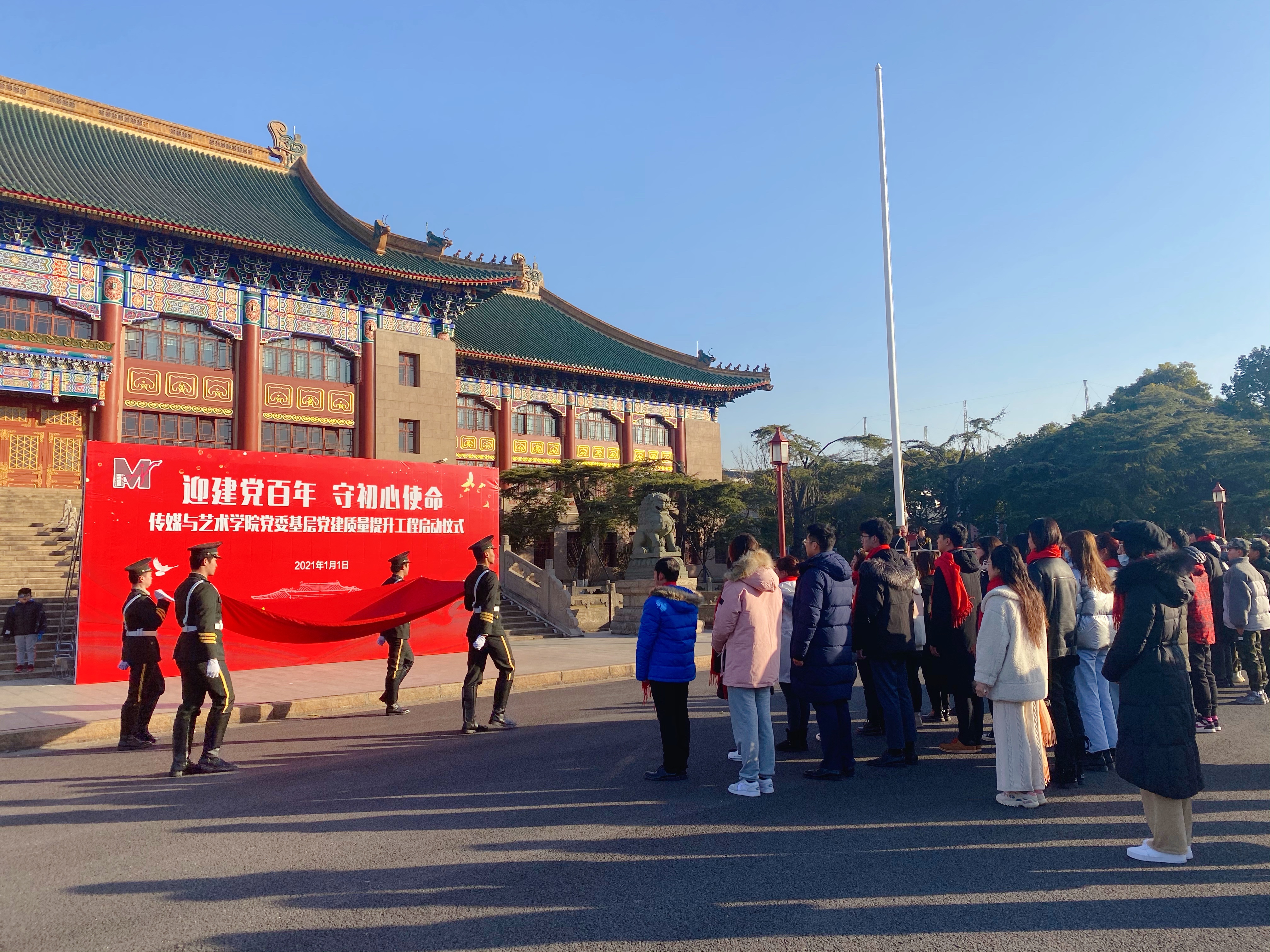 1月1日早8:30,传媒与艺术公司党委2021年基层党建质量提升工程启动仪式在绿瓦大楼前隆重举行。传艺公司领导班子、党支部书记、师生党员代表五十余人在国旗下集结,在庄严的国歌中共同迎接建党一百周年的到来。公司党委书记李崟出席仪式,并为传艺师生上了新年第一课。
