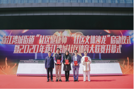 为积极践行人民城市重要理念,做实“街校企党建共同体”,公司与新江湾城街道发挥高校学科优势,汇聚专业人才、整合各方资源,继续深入推进“社区健康师”项目。在三方单位前期多次沟通交流的基础上,10月23日,“社区健康师”“社区文体沙龙”启动仪式暨2020年“炫彩欢动月”新江湾城社区体育大联赛开幕式在新江湾城街道湾谷科技园区举行。