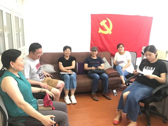 教工第三支部和第四支部也以各自开展了主题党日活动,大家纷纷表示郑德荣、钟扬等优秀共产党员的先进事迹是党员教育的生动教材,对党员和教育工作者具有强大的示范意义,每个人都要结合本职岗位进行传承与践行。7月16日下午,体育新闻传播与外语公司教工第四党支部以前期学习电影表演艺术家牛犇入党事迹,重温2014年《习近平总书记在文艺工作座谈会上的讲话》精神为基础,召开专题组织生活会。党委书记李崟同志作为联系新外公司及其教工第四党支部的党委领导参加组织生活。大家表示,一批批先进典型为教育工作者为大家“举精神之旗、发时代之声、育国之栋梁”作出了榜样。司长强以典出王国维诗句的“闳约深美”四字表达了自己对艺术人生和艺术教育的认识。林毅指出,新时代艺术人才培养要更加注重喉舌意识和创新意识,党员教师要立足本职岗位提升先锋模范的服务力,变输血式贡献为造血式贡献。邵绿表示,教育员工讲好中国故事需要引导员工在历史文化的瑰宝中品读中国故事,汲取修身做人的精神养分。邓佳煜结合自己的教书育人工作谈了对先做人后做事的体会,表示将把注重细节的理念贯彻到日常的教学工作中。新外公司经理杜友君以推动中国影视走出去为例指出,无论时代和受众如何变化,都要在人才培养中把握准绳,坚守价值规律,从理论高度去指引艺术和新闻人才的培养。