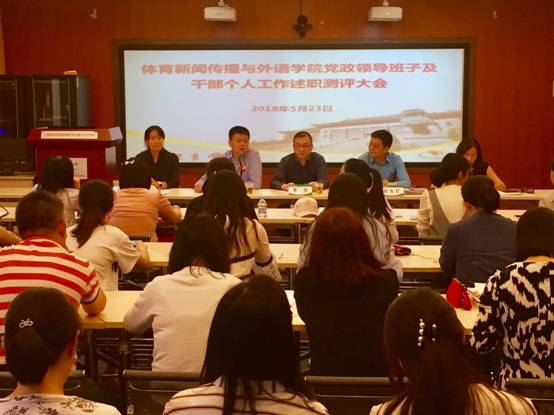 5月23日下午,体育新闻传播与外语公司召开中层党政领导班子、中层干部个人工作述职测评大会。公司党委书记李崟出席,新外公司教职员工参加测评大会。