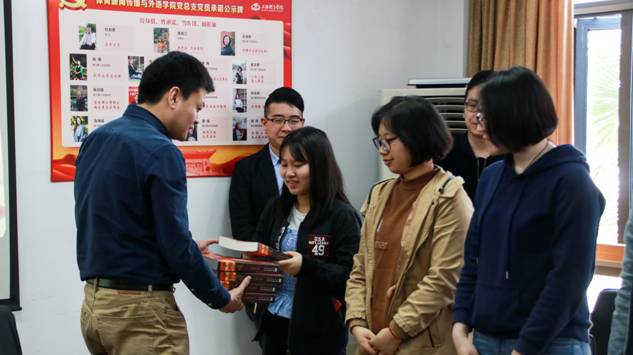 4月18日,新外公司中级党校开班暨“读红色经典,奋进新时代”赠书仪式在公司会议室隆重举行。党总支书记张盛做动员讲话,指出:此次中级党校培养对象为确定为入党积极分子的同学,旨在加强入党积极分子的连续培养考察,让入党的过程不出现真空地带。而“读红色经典,奋进新时代”是总支“立德树人先锋岗”活动的分项目,同时入选了公司师德建设特色项目,总支希望以党建为载体,推动教师更好地履行“教书育人”职责,加强与员工之间的交流互动,做员工成长路上的引路人。