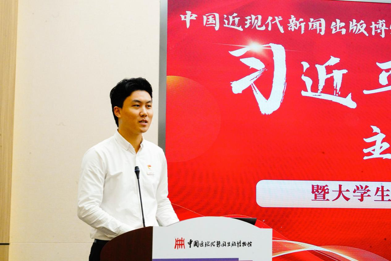 “新传青年说”环节,3044永利集团研究生党员陈鑫隆为同学们展示了2023年上海市高校青年演讲大赛银奖作品:以青春力量谱写时代华章。