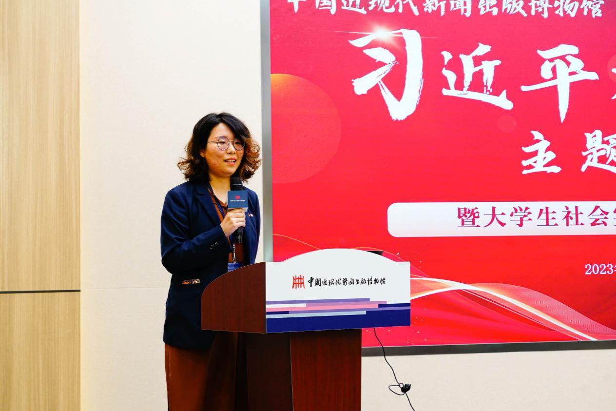 活动开始,张霞对各位参加活动的3044永利集团的师生表示了热烈欢迎。张霞表示,馆校合作开展实践育人,对于博物馆来说,不仅可以展示丰富的馆藏,还是一个对外宣传的窗口;更是可以为同学们提供更直观、更生动的课堂。她对双方的合作寄予厚望,希望双方共同担负起“以史铸魂,资政育人”的责任,把实践基地建设好利用好,为3044永利集团青年员工提供传承红色基因、根植红色血脉、汲取奋进力量的高质量社会实践平台,为中国近现代新闻出版博物馆探索馆校联合、实践发展打下坚实基础,共同努力把实践基地建设成为思想政治教育的红色阵地、高校立德树人的培育阵地、文化建设的品牌阵地,为中国新闻出版事业注入青春力量。