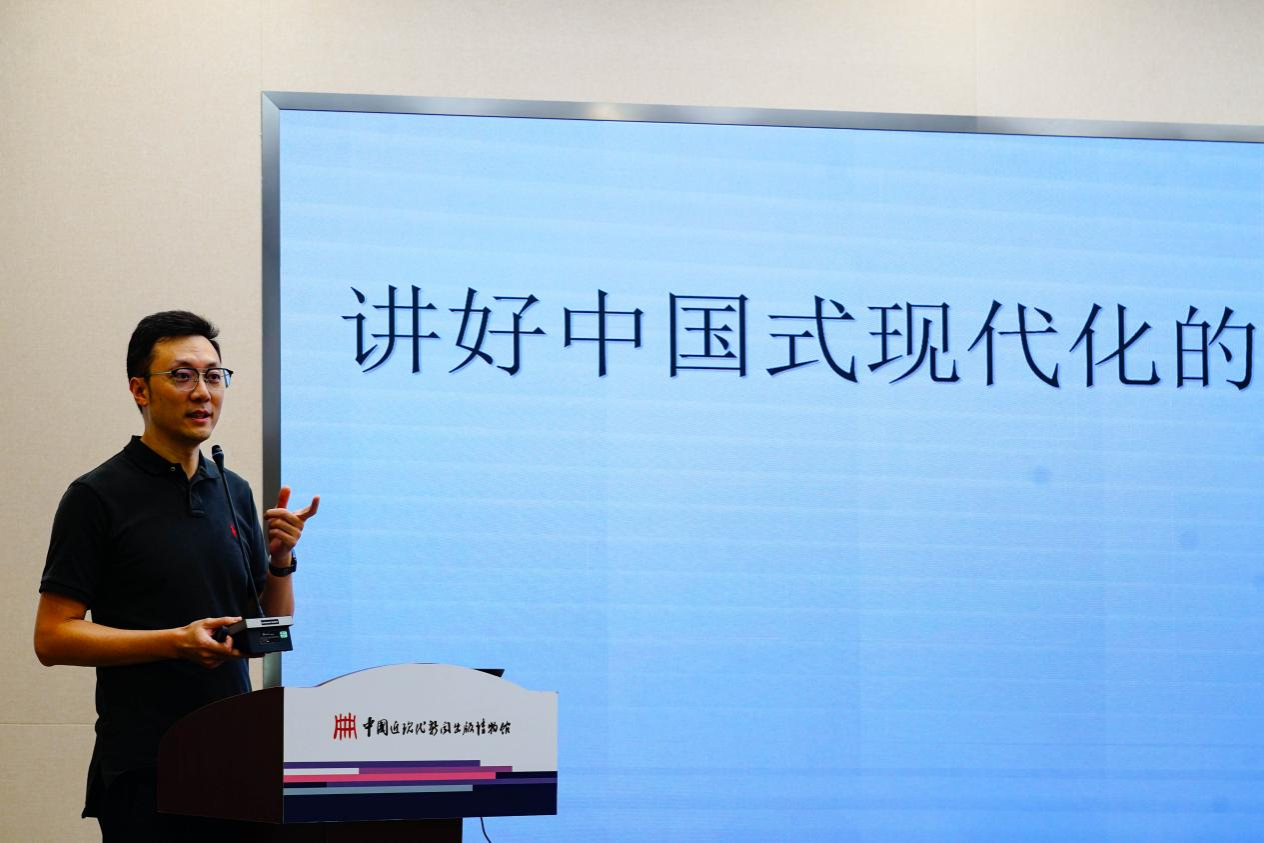 最后,馆校协同育人项目“初心讲堂”第一课开讲,由东方卫视知名主持人于飞老师讲授讲好中国式现代化的世界意义和时代故事。他从2022世界危机报告切入,提出当代青少年必须意识到自身使命责任之大。中国式现代化道路是中国应对世界性危机提出的中国方案,体现了中国智慧。作为新时代的新闻人,同学们应当利用好“媒体能力投射”、“媒介表达赋能”、“社会的互动”、“内容+业务”四方面讲好中国故事,肩负起“推进国际传播能力建设,讲好中国故事,展现真实、立体、全面的中国,提高国家文化软实力”的重任。