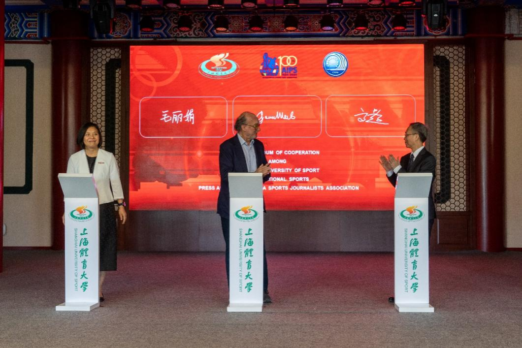 会上,梅洛、高超与毛丽娟共同签署了合作备忘录并为“奥林匹克国际传播人才培养基地”揭牌。今后,三方将共同策划、开发和实施针对新闻传播类专业员工的国际传播能力提升项目,定期遴选优秀的员工到国际体育记者协会、中国体育新闻工作者协会实习实践,以拓展员工的国际视野和实践技能。此外,三方将通过联合举办传媒年度学术研讨会议,共同组织体育媒体从业人员能力提升培训班等形式,推动新闻与传媒领域学术创新发展。