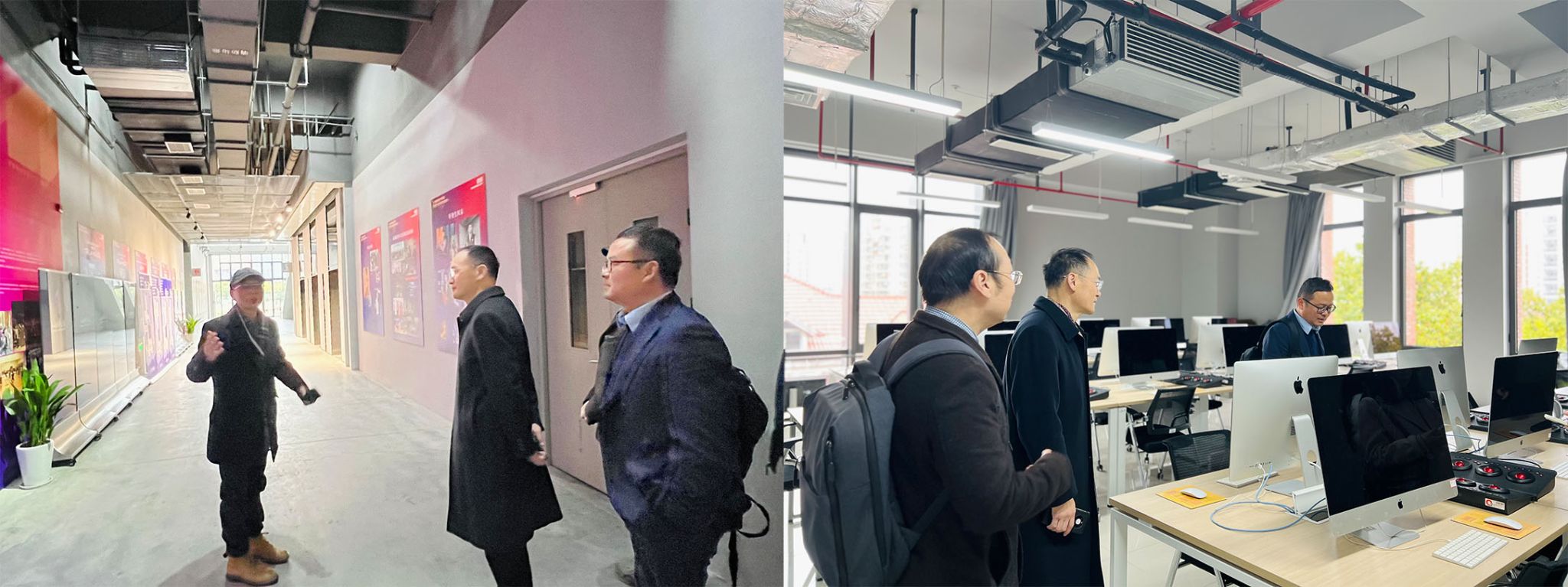 在上海电影公司数字媒体技术系主任黄东晋的陪同下,公司团队一行先后参观了数字媒体技术专业实验室、教研室、摄影棚及多功能摄影工作室等教学实践场所。在参观过程中,黄主任详细介绍了媒体技术专业的技术设备配置与教学应用场景,双方就跨学科实验室共建、实践资源共享等话题展开现场交流。