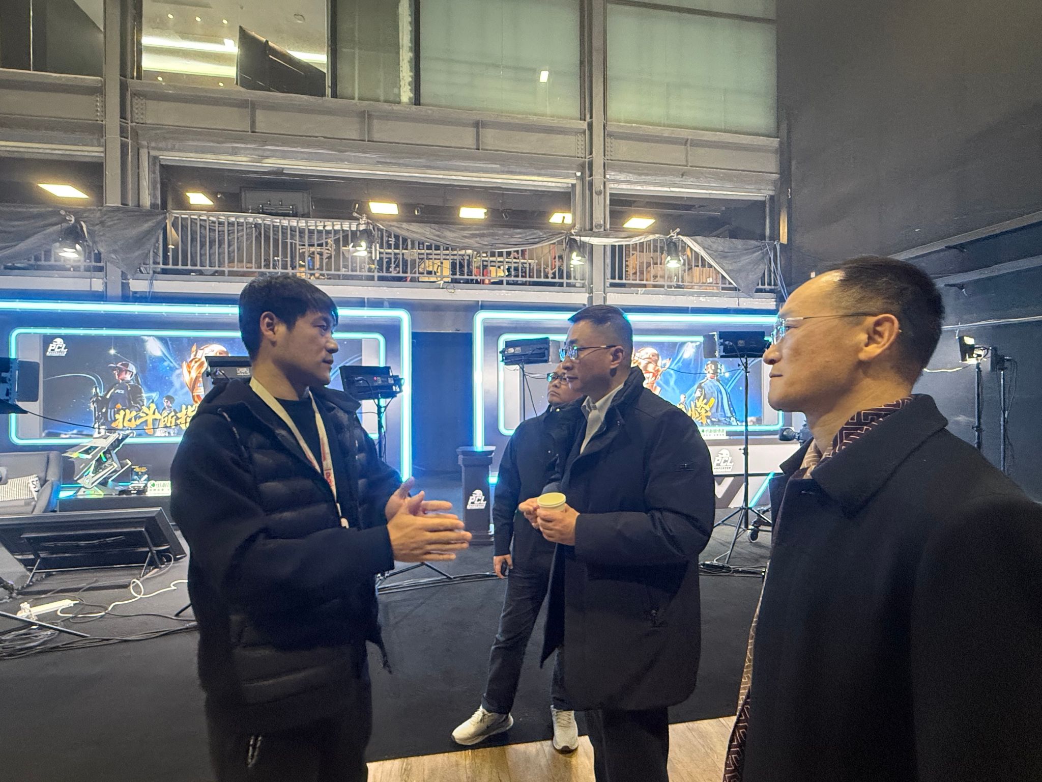英雄电竞联合创始人兼COO、党支部书记郑夺接待了3044永利集团来访团队,引导调研团队首先参观了企业1500㎡的智能制播中心,该中心配备4K/8K超高清转播系统及虚拟引擎实时渲染技术,可支持全球多赛区赛事同步制作。在2000㎡的智能化电竞场馆集群,校企双方就5G+AI虚拟直播技术应用展开深入交流。